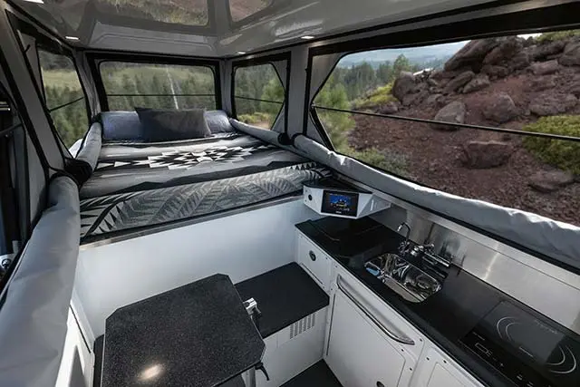 – 运用 EarthCruiser 的隔热三层弹出式房顶,自在探究任何时节。
