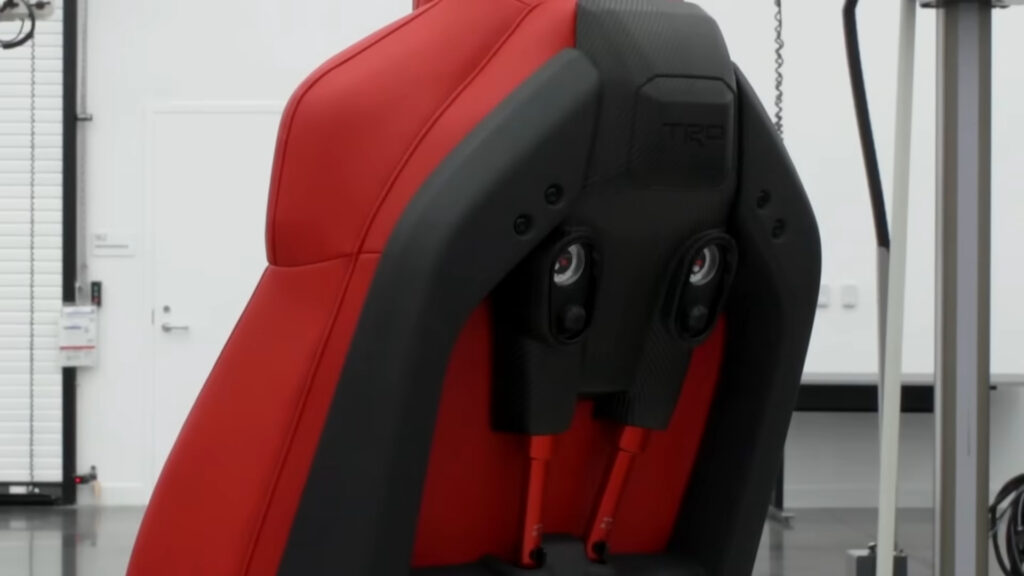 丰田表明,IsoDynamic Performance 座椅将“安稳驾驭员的视界,以进步注意力、舒适度并削减高低小路上的疲惫。” 为完成这一方针,它采用了两个气液式减震器来办理座椅的笔直和横向行程。风趣的是,它们也是可调的。
